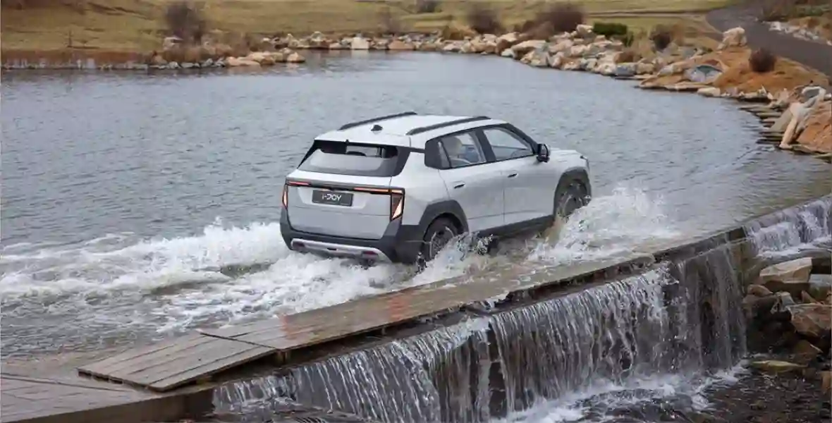 Подвеска в кроссовере мягкая, но машина уверенно держит прямую даже на очень больших скоростях, а крены в поворотах минимальные, чему способствует типичный для электрокаров низкий центр тяжести. Поведение i‑JOY можно изменять с помощью режимов «Эко», «Комфорт», «Спортивный», заметно различающихся, в частности, информативностью баранки. Усилие на руле настраивается и отдельно. Также на выбор есть три режима рекуперации.