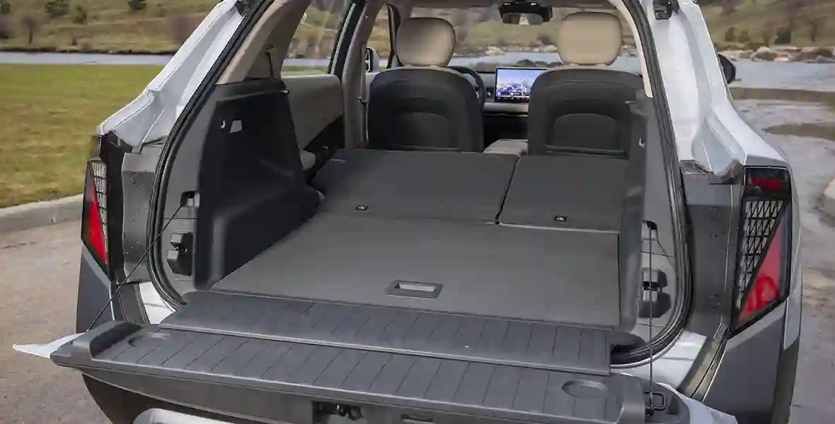 Заглядываем в багажник, и здесь нас ждет сюрприз — двухстворчатая пятая дверь с откидным бортом. Она устанавливается в пикапах или на больших внедорожниках, чтобы облегчить погрузку габаритной поклажи. Удобство использования такого форм-фактора в компактном кроссовере — вопрос дискуссионный, хотя данное решение, безусловно, оригинально. Дополнительный бонус в этом случае — откидная багажная створка, например для пикника на природе (заявлено, что она может выдержать нагрузку до 150 кг), а еще здесь есть дополнительные ниши для подстаканников.