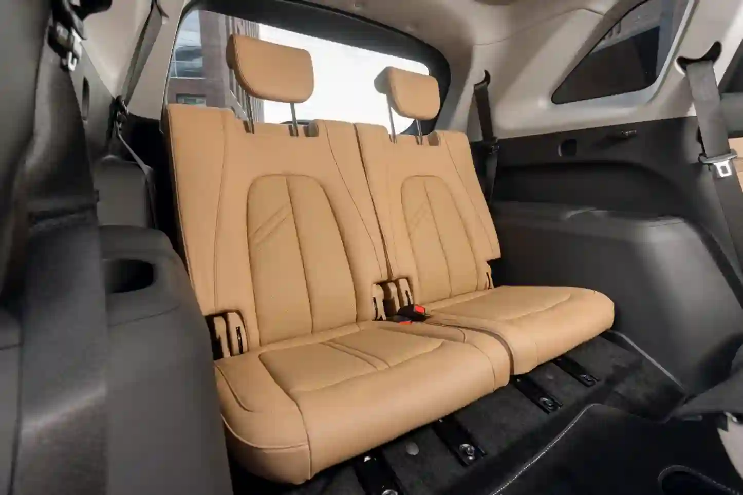 Второй ряд сидений можно двигать в продольном направлении, а его спинки регулируются по углу наклона. Сюда, равно как и к третьему ряду, выведены дефлекторы системы вентиляции. «Галёрка» - это стандартные два кресла с функцией доступа с пассажирской стороны. Для пробега на короткие дистанции здесь находиться сносно, вот только на скарб позади остаётся всего 187 литров. Да и «запаска» отсутствует как класс, это обидно.