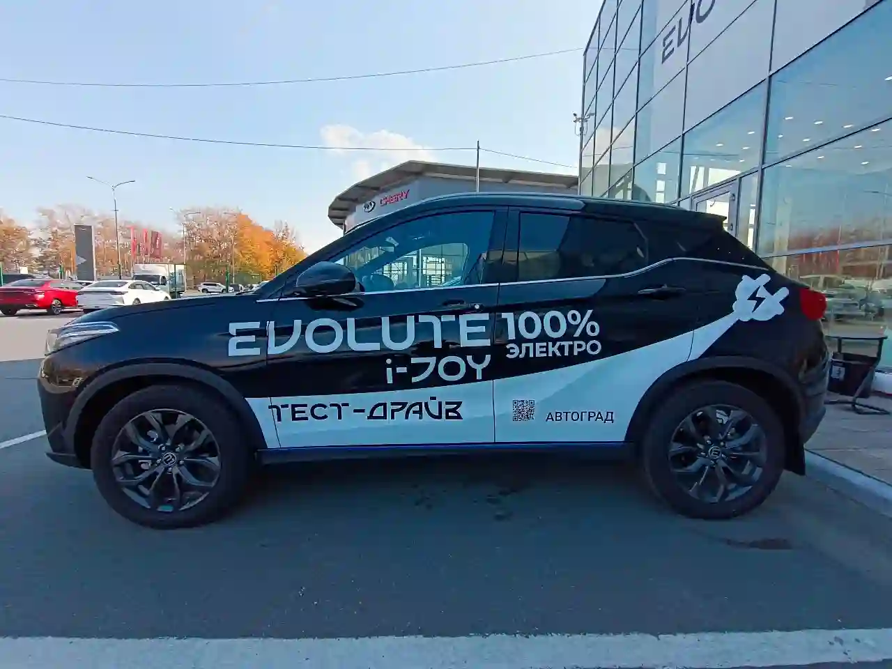 В Тюмени открылся дилерский центр новой марки EVOLUTE. Это первый российский завод, который выпускает автомобили только на электрической тяге. Построен он в Липецкой области. Первые две модели — седан i‑PRO и кроссовер i‑JOY — уже доступны для тест-драйва и покупки. Для пробной поездки мы выбрали кроссовер. До нас его тестировал глава Минпромторга Денис Мантуров. У i‑JOY отличный дизайн! Так и просится, чтобы его купили и наслаждались поездками. Кстати, «joy» с английского — «радость». Внешне напоминает недавние хиты продаж — Volkswagen Tiguan или Toyota RAV4 предыдущего поколения.