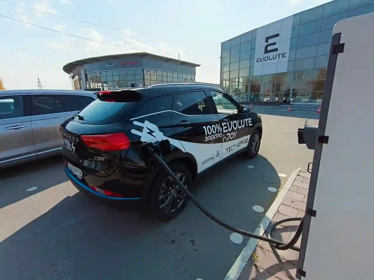 Как и на электромобилях других брендов у EVOLUTE есть возможность заряжать тяговую батарею от сети 220 В. И седан, и кроссовер от домашней сети заряжаются в течение 8 часов. На зарядной станции мощностью 50 кВт батарея зарядится в течение часа.